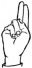 На ћирилици написано МИЊА ДАНГУБИЋ састоји се из 12 слова [?]. Исписано ћириличном једноручном азбуком за глувонеме: